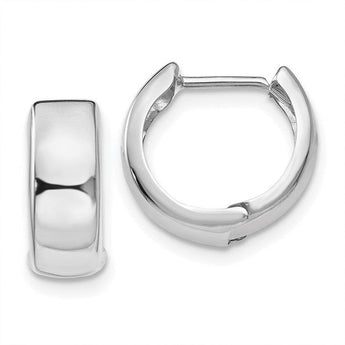 Crafted from 14K white gold these hinged hoop earrings deliver timeless elegance. The 12mm diameter and 5mm width create a refined, versatile silhouette that is perfet for everyday.