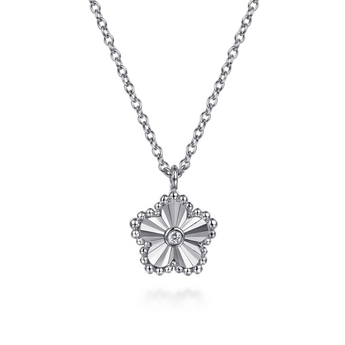 Gabriel & Co. 925 Serling Silver Diamond Bujukan Frame Flower Diamond Cut Pendant Necklace