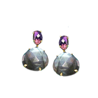 Petit Bijoux 18k Yellow Gold Plate Sterling Silver Gum Drop Labradorite and Amethyst Earrings