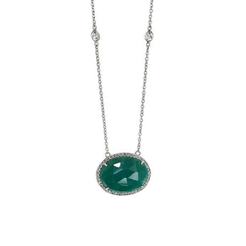 Petit Bijoux Designer Sterling Silver And Genuine Green Oval Chalcedony Pendant