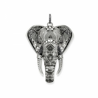 Thomas Sabo Sterling Silver, Black Cubic Zirconia and Onyx Large Elephant Head Pendant
