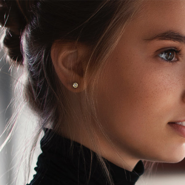 These charming studs bring new life to estate earring mounts, carefully refreshed in our Ottawa atelier and set with sparkling lab-grown diamonds. Each bezel holds a round full-cut lab-grown diamond, approximately 2.2mm each (SI1-SI2, GH, 0.08ctw), catching the light with timeless sparkle. Secured with classic posts and butterfly backs, they’re perfect for wearing solo or layering into a curated ear stack for a modern, personalized look.