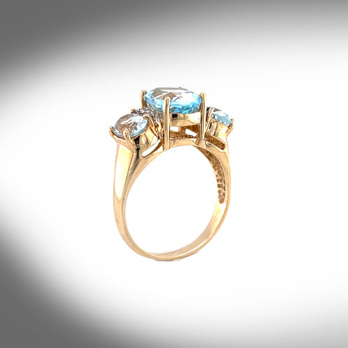 Vintage 10K Yellow Gold Blue Topaz and Diamond Ring