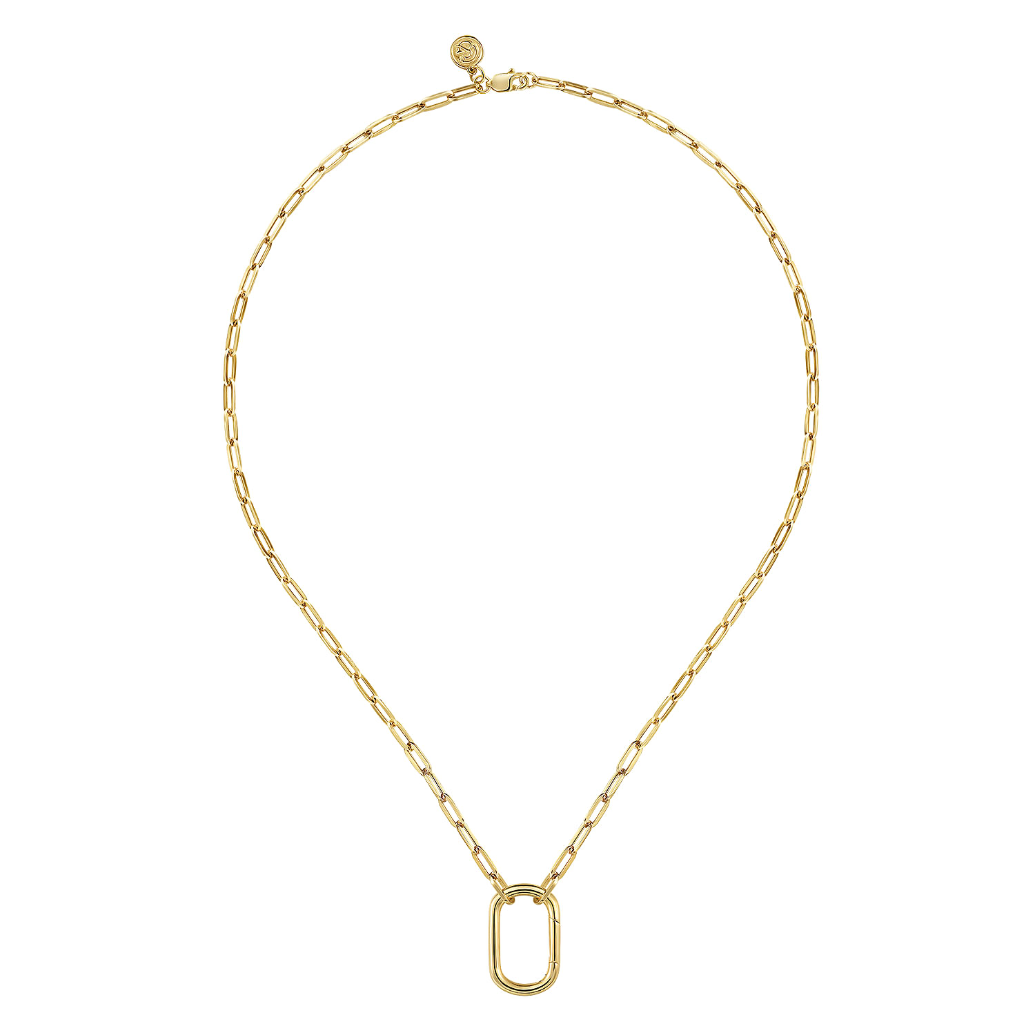 Gabriel & Co. 14K Yellow Gold Chain Necklace with Carabiner Rectangle Drop