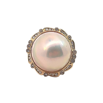 Vintage 18K Yellow Gold Mabe Pearl and Diamond Halo Cocktail Ring