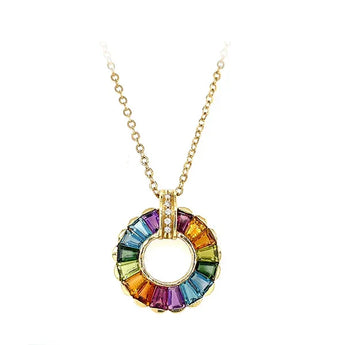 Estate 18K Yellow Gold Diamond and Gemstone Rainbow Scalloped Circle Pendant