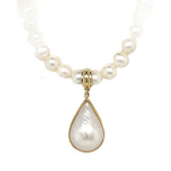 Estate Italian 18K Yellow Gold Pear-Shape Mabe Pearl Enhancer Pendant