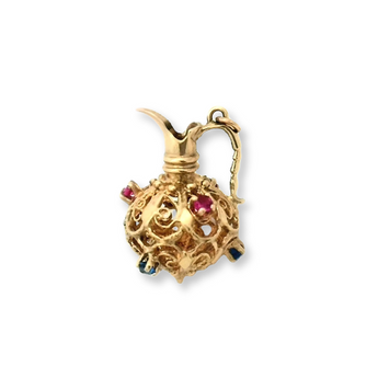 Vintage 10K Yellow Gold Filigree Gemstone Jug Pendant Charm
