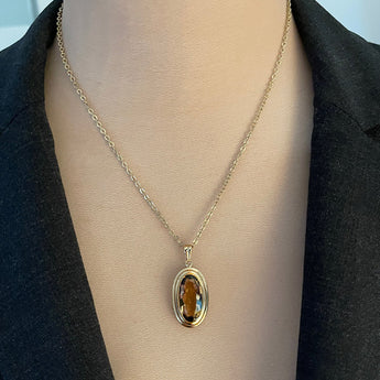 Vintage 8K Yellow Gold Bezel Oval Smoky Quartz Pendant On A 14K Yellow Gold 20 inch Chain
