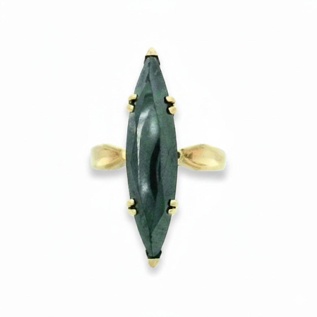 Estate 10K Yellow Gold Marquise Hematite Statement Ring