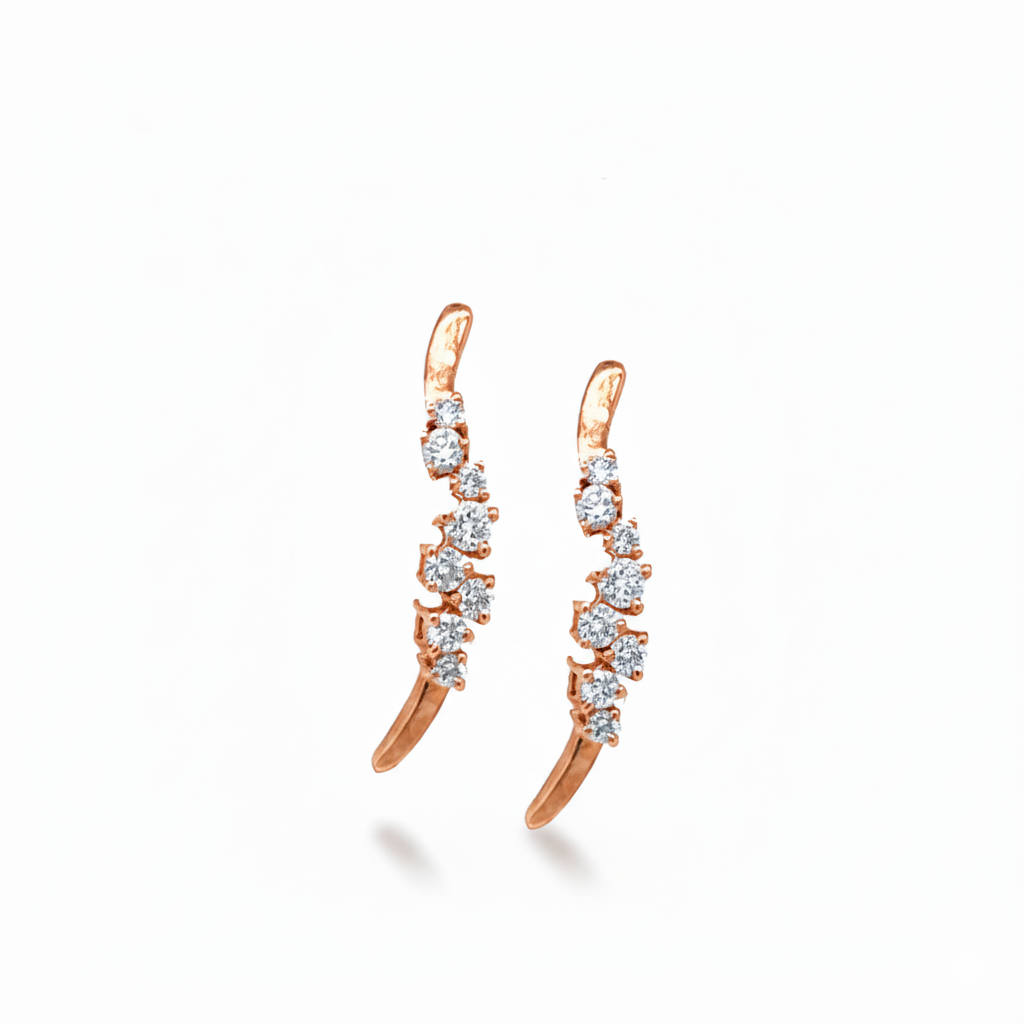 10K Rose Gold Diamond Ear Crawler Stud Earrings