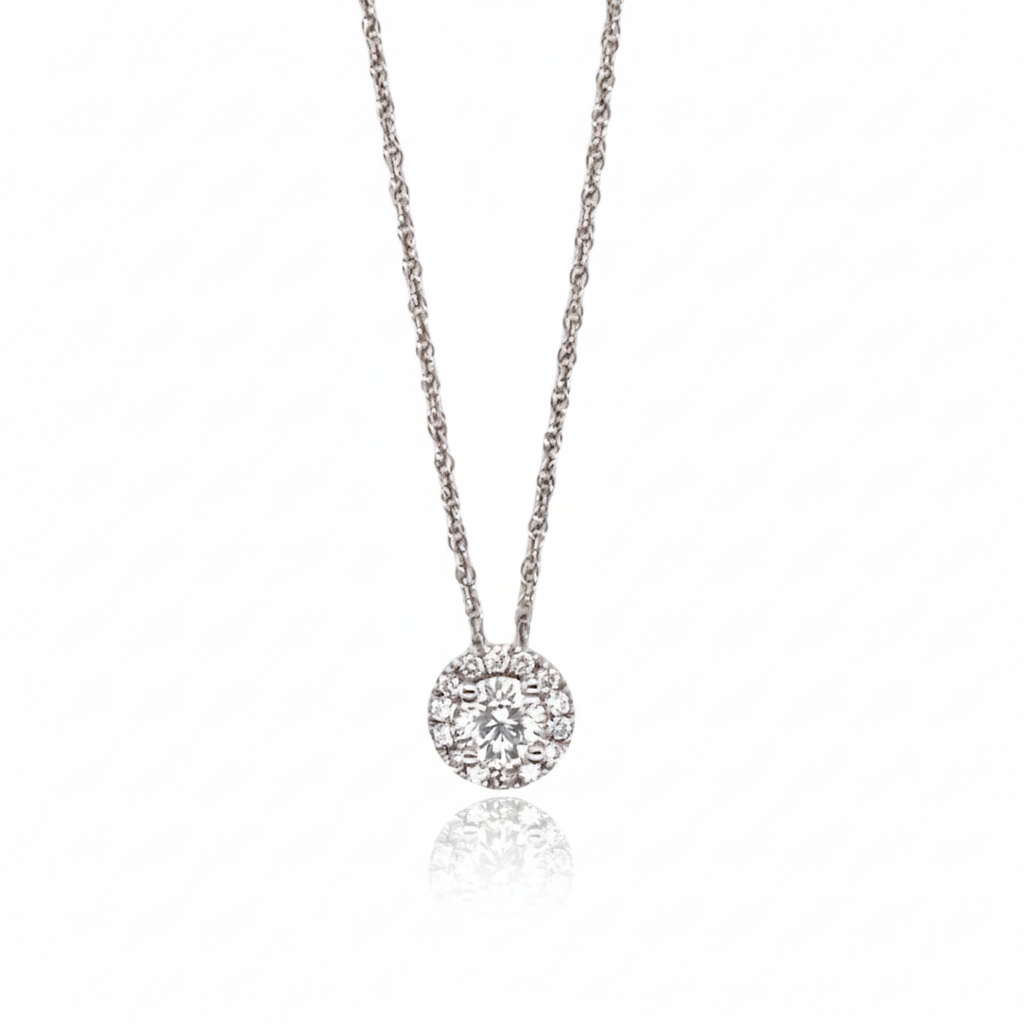 14K White Gold Diamond Halo Slider Necklace