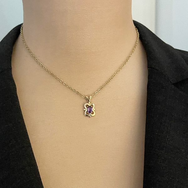 Estate 14K Yellow Gold Amethyst Floral Pendant