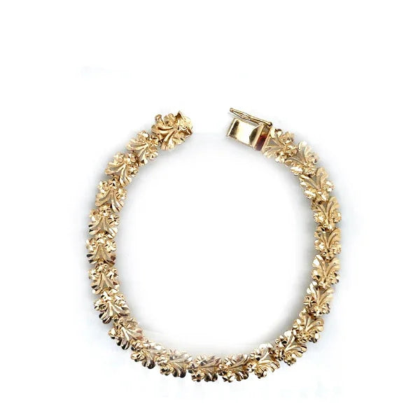 Estate c.1980s 14K Yellow Gold Fancy Floral Link Bracelet